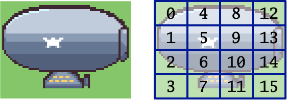 For example, I could slide a soldier from one tile column to the next by one pixel per frame over 16 frames. In NTSC video mode at 60 frames per second, that would take 16/60 = 0.26 seconds. In PAL video mode at 50 frames per second, that’s 16/50 = 0.32 seconds.