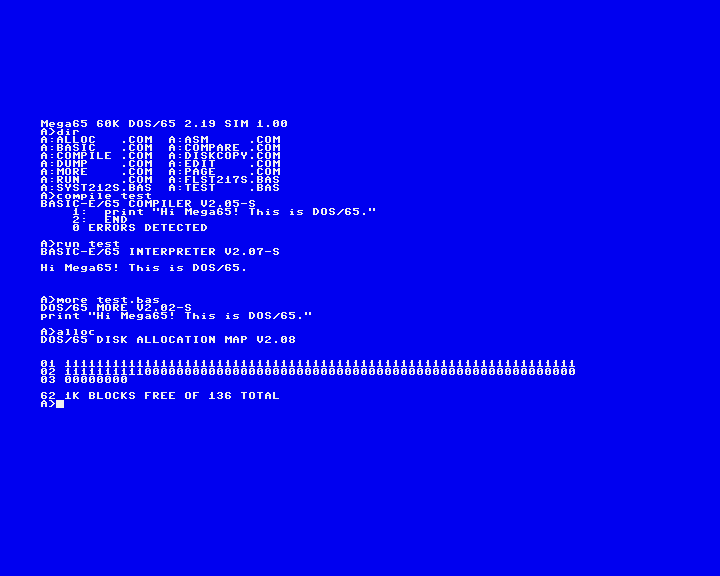 DOS/65, MEGA65 port by Stefan Eilers.