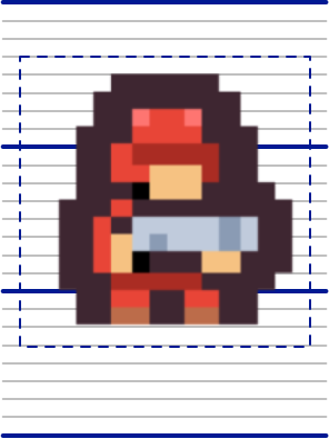 - The first row has three empty pixel rows followed by the top five pixel rows of the top character of the soldier.