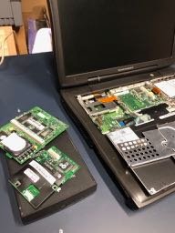 My first upgrade attempt was replacing the hard drive with an SSD. It’s an IDE interface so I hoped to use an mSATA-to-IDE adapter. I’ve read this is feasible but obviously I can’t yet confirm. (Twitter is reversing the order of my photos; red thing is the new thing.)