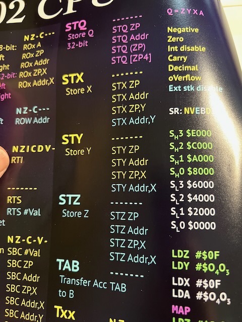 I’m happy to announce that you can now get a MEGA65 45GS02 Quick Reference mousepad and poster of your own, just in time for the holidays! Get one for yourself, and one for that special someone in your life that writes MEGA65 assembly language programs.