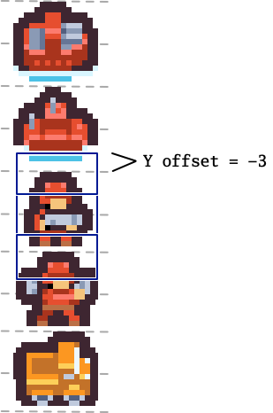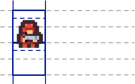To draw the red soldier at vertical position Y=3, we use a character data Y offset of -3 for all three rows. Each character row works as follows: