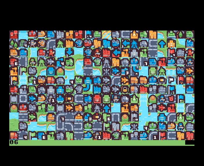 DISPLAY: Shows one tile at a time in the top left corner. Press A and D to cycle through them; press space to exit.DISPLAY2: Displays the entire tileset. Press space to exit.DISPLAY3: Displays the entire tileset, using a general purpose subroutine that can draw a given tile at a given grid position. (Run/Stop + Restore to exit. No particular reason, I think I just wanted the program to be shorter so I left out the reset code.)DISPLAY4: Simple GOTOX demo, draws a red soldier on top of flowers.DISPLAY5: Stress test of layer drawing. Press any key to draw another layer of random tiles. Adjust theLC = 11in line 10 to watch it fall apart at different points on real hardware and in Xemu. The layer count is in the last row. Also there’s a fix for the glitch in the lower right corner in other demos.DISPLAY6: A gameplay sketch, based on the Kenney Tiny Battle demo scene, using the full-layer technique. The little green corner in the piece of road over the water is just me being lazy: I put the road and water tiles in the same layer, but I could have added one more layer for the road to be properly above the water.